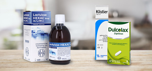 Hier steht eine Vielzahl unterschiedlicher Medikamente zur Verfügung, die auf verschiedene Weise im Körper wirken. Geeignet sind solche Abführmittel, die die Darmtätigkeit anregen. Das ist etwa bei Bisacodyl der Fall, eine pflanzliche Alternative sind Sennesblätter. Sogenannte osmotische Abführmittel wie Macrogol ziehen Wasser in den Darm und verflüssigen so den Stuhl. Ähnlich wirken auch Quellstoffe wie etwa Leinsamen oder Flohsamenschalen. Hier sollte auf eine ausreichende Trinkmenge geachtet werden, um die gewünschte Wirkung zu erzielen. Sehr stark osmotisch wirkende Salze wie Glaubersalz oder Bittersalz belasten den Darm und sind daher nicht für eine Behandlung geeignet. - Einläufe
